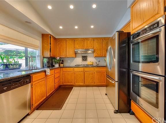 This lovely home is located in a very quiet, high-demand cul-de-sac street in the Walnut School District. This beautiful split-level home features cathedral ceilings 4 bedrooms, 3 bathrooms, family room with a bedroom and full bathroom downstairs, remodeled kitchen with recessed lighting, granite counters, stainless steel appliances. Dining room features French doors leading out to the side yard, back yard has patio with beautiful pool and hillside views. Interior master bathroom with separate shower and tub, and two closets including a walk-in closet. Back yard is well maintained with sparkling pool. This home is well maintained along with upgraded double panel windows and wood shutters. Paid off solar system panels. Short distance to Suzanne Middle School and Walnut High School.
