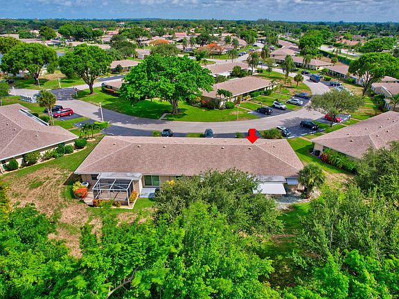 NOTHING! That is what this unit needs! Discover luxury and convenience in this stunning 2-bedroom, 2-bathroom villa. Sip your coffee on the covered patio and enjoy this corner unit's expansive yard. IMPACT door and windows throughout. New Roof (2022). A/C new (2022)-open concept floor plan. This modern kitchen features high end stainless steel appliances, upgraded cabinets and boasts a refrigerator that will actually make amazing coffee. The Washer/Dryer has extra large capacity; and INSIDE your home. Your upscaled bathrooms showcases music and lighting controls which enhance the experience of your rainfall shower. Your home is completely updated so you can pamper yourself. LOTS of extra storage space built in throughout, keeps life simple and clean. Top of the line built in Murphy bed with elaborate shelves and lighting will enhance the versatility of the 2nd bedroom. Very low hoa Dues keep living affordable. Have peace of mind that you are safe in the Gated community. Boca Lakes is a vibrant 55+ community located in central Boca Raton. Close to Great shopping, restaurants, and endless entertainment.