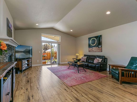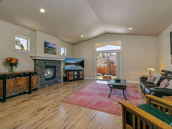 Impeccably maintained single-level home in the highly desirable Viewpoint Ridge neighborhood! This open concept floor plan lives large with vaulted ceilings, spacious living areas and abundant natural light throughout. Enjoy entertaining friends in the gourmet kitchen with chef's island complete with island mount range hood, quartz countertops, stainless steel appliances and pantry. Spacious primary suite with large walk-in closet, double vanity, soaking tub and walk-in tiled shower. Two generously sized guest bedrooms and a beautiful office or fourth bedroom. Oversized three-car garage provides ample space to store all of your outdoor gear needed for adventuring in Central Oregon. Separate laundry room. After a long day of work or play, sit back and relax under the covered patio in your private, fully-fenced backyard. Steps away from Rockridge Park, one of Bend's best outdoor parks with skatepark, 9-hole disc golf course, mountain bike skills course and walking paths.