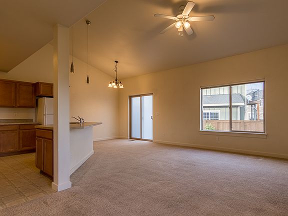 Wonderful layout. This townhome is light and bright with vaulted ceilings and an open layout. A large kitchen island, pantry, gas fireplace, washer/dryer, 1 car garage, and tons of storage. Upstairs you will find both bathrooms- each with their private bathroom. The back hosts a deck and fenced back yard. This is a very quiet neighborhood with great access to both Bend and Redmond. Owner pays water/sewer and landscaping. Sorry- no animals.