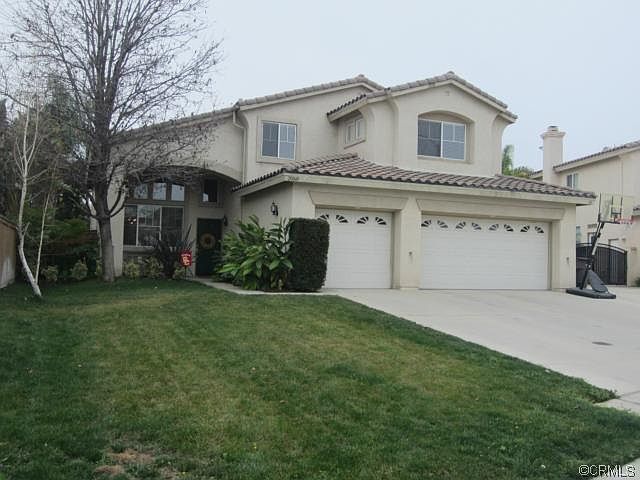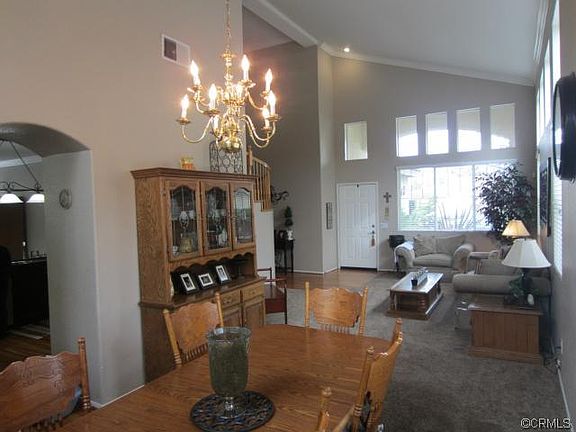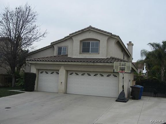 Orangecrest pool home in a great neighborhood at the top of a cul-de-sac. Walk into a large formal living/dining room with high vaulted ceilings and crown moulding throughout. This open, bright area has new carpet and has the room for a large dining table, furniture and maybe a grand piano. From the dining room, step into the perfect kitchen that has been upgraded with cherrywood cabinetry, dark granite countertops, GE stainless steel appliances and hard wood laminate flooring. The family room has a fireplace. The first floor offers a spacious office that can be converted into the 5th bedroom. The laundry room and sink is downstairs near garage. Make your way upstairs and land at the master suite. The double doors lead you into a bedroom that can house a large king bed, furniture and a TV for a good nights sleep. The bathroom has a stand-up shower, a bathtub and a large walk-in closet. The upstairs includes 3 additional bedrooms and another full bath. Escape to paradise in the backyard where the tropical landscape features an Alumawood patio cover with a Bogner pool and spa. RV parking and a dog run complete this well planned home. This home has a 3-car garage, automatic sprinkler system and drip system in the back.