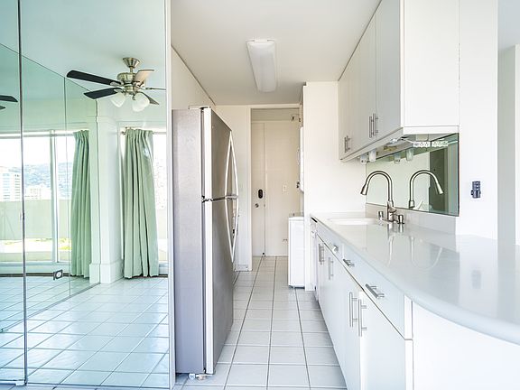 You're going to love this RARELY AVAILABLE, CORNER END, HIGH FLOOR, 2 bedrooms, 1.5 bath unit with 1 COVERED GARAGE PARKING right next to the elevator for easy access! The TWIN TOWERS building is located in the heart of the Waikiki neighborhood! In close proximity to world-class dining, entertainment, shopping, and beaches, including the world-renowned WAIKIKI BEACH! THIS HIGHLY UPGRADED UNIT features all ceramic tile flooring (NO CARPETS), a walk-in pantry in the kitchen, Stainless Steel appliances such as Refrigerator, Dishwasher, Over-the-range Microwave, Range Oven, and NEW in-unit Washer/Dryer. Light & bright, freshly painted interior, no popcorn ceiling. The expanse of floor-to-ceiling windows & sliders leads to a spacious lanai that extends the entire length of the unit with great views of the city, mountains, Ala Wai canal & the ocean. Enjoy great cool trade winds cross breeze throughout the year that will save you on your electricity bill (avg $100/mo). The building amenities include a sparkling pool, sunbathing area, and an in-resident Building Manager. CABLE, HIGH-SPEED FIBER OPTIC INTERNET, WATER, SEWER, and TRASH are included in the rent. 1-year minimum rent. No pets allowed. Certified Service Animals allowed with Association approval, only. No smoking. Renter's Insurance required.