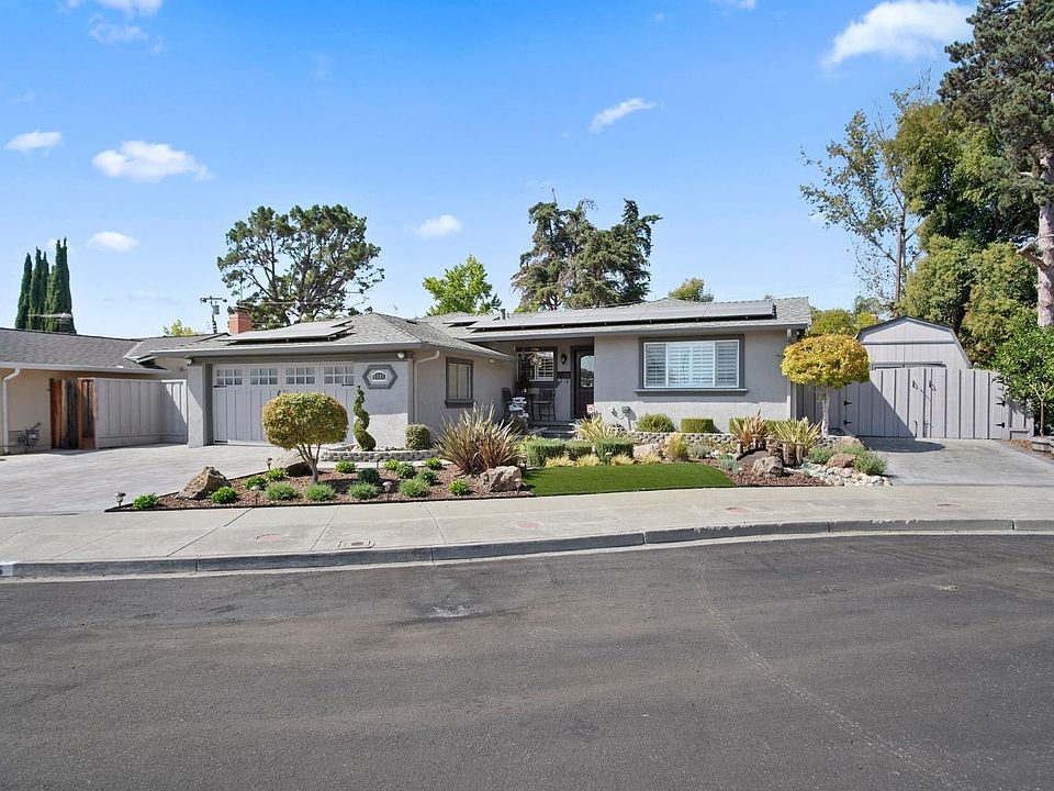 Welcome home to 2085 Arbutus Ct. First time on the market, this gorgeous home has it all and pride of ownership shows! This home is conveniently located and sits perfectly at the end of the cul-de-sac. You will be blown away as you pull up to a tastefully and professionally landscaped front yard with paver driveways and a low maintenance yard. Tastefully remodeled kitchen and bathroom completed in 2020 showcases high end wolf stove, quartz counters, shaker cabinets, shutters, and luxury vinyl planking throughout entire home. Master bedroom has outdoor access to escape to the backyard with two beautiful premium covered patio structures, pavers, and much more! ADU structure with one bedroom and one full bathroom is perfect for inlaw quarters or perfect space for a home office. Solar is owned and also EV charger to be energy friendly. You won't want to miss the opportunity to own this stunning home. Call today!