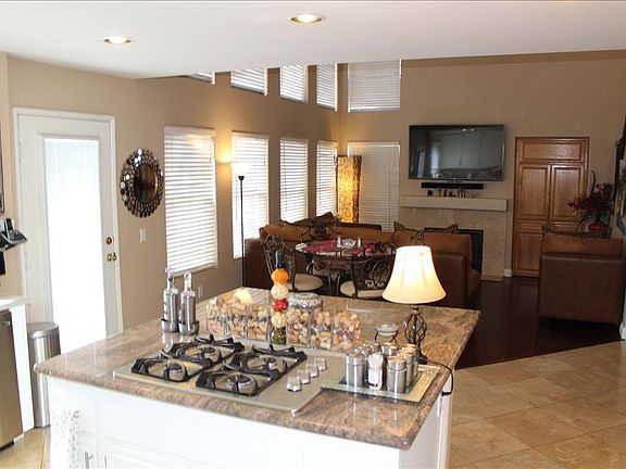 Prime view lot at Alpine Country Villa's. 4Br, 3Ba, 2116 Sqft home with panoramic sunset views. Custom pool with rockslide and 2 waterfalls. Beautiful landscaped yard, new vinyl fencing and solar owned system for pool and electricity. Model home interior with travertine tile floors, mahogany and wrought iron spindle staircase, remodeled kitchen with granite and Corian counters, new upgraded stainless appliances. Has separate living and family room with fireplace. Custom painted interior, large dining room area and eat in dinette off kitchen. Has full bedroom and bath at entry level and spacious master and dressing area upstairs. Has a 3 car garage, indoor laundry. Shows like a model home and is move in ready.