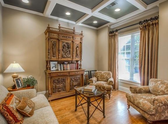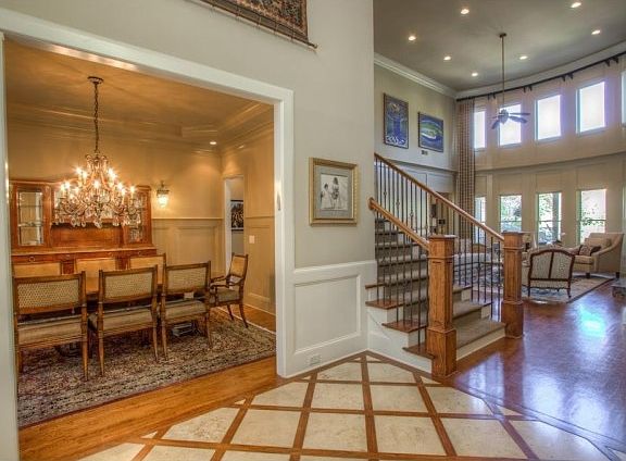 - Interior: 10 ft+ Ceil Main, 2-Story Foyer, Cathedral Ceiling, Entrance Foyer, Hardwood Floors, Trey Ceilings, Walk-In Closet(s), 9 ft+ Ceil Upper, Disp Attic Stairs, His & Her Closets, Exposed Beams, Smart Home Technology