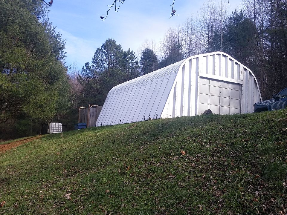 25 X 30 metal structure on concrete foundation with camper and camper hookups.