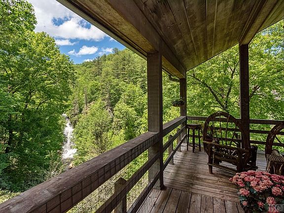 With Robinson Creek flowing past and a spectacular view ofGreatFalls,this may be the most amazing waterfall view property on the market! The large family living area on the main floor opens to plenty of covered decks and porches. The wall facing thefallsand mountain view is vaulted with huge glass windows to take it all in. The large master suite accesses a deck that offers aview of thefalls. The spacious 7.76 +/- acre lot is private with no neighbors in sight. In addition to the waterfall view, you can gaze across the river at a rock face and the mountains beyond. Sleep to the sounds of cascading waters; take in the mountain air. This is the place you will be able to relax and discard the outside world!