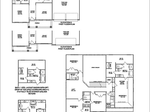 Welcome to the Granville Plan. This is a traditional two-story home with a first-floor guest suite, along with a study and dining room off the entry. The main living area includes a large two-story family room opening to the island kitchen and breakfast area. The kitchen adjoins the dining room via a hallway with a built-in butler's pantry and walk in pantry making this plan ideal for entertaining. A spacious mudroom with drop zone is located at the entry from garage foe additional organization. Upstairs, there are four bedrooms, a loft area, and a centrally located utility room with folding counter. The upstairs primary suite includes a sitting area, luxurious bath with separate vanities, walk-in shower, garden tub, and two walk-in closets. Options included on this house include tankless water heater, fully tiled shower, free-standing tub & 18'X12' covered patio
