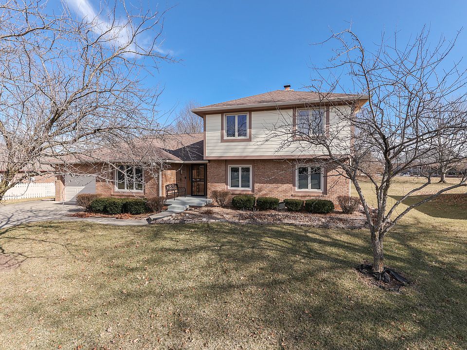 Enjoy the spacious feeling once you step inside this 2 story home with finished basement in popular Hunters Pointe with 19x15 three seasoned room, 22x14 patio & 25x17 wood deck overlooking large private tree lined back yard in established neighborhood of custom homes. Features include nice kitchen w/cherry Corsi cabinets & brkfst rm w/luxury vinyl plank flooring overlooking large fam rm w/gas log frplc & blt-in bookshelves. The primary bdrm upstairs has full bath, dbl vanity, 2 closets & balcony overlooking back yard. Note 4th bdrm on main floor great for guests w/full bath nearby. The 36x18 Rec Rm in basement has Owens Corning finished walls to absorb sound. HVAC new in 2021, A/C in 2016, roof 2018, exterior painted in 2023 and exterior is brick and hardie board. Also garage is large with extra area for storage, workshop etc. New carpet in living room, all bedrooms and stairway, installed April 2024.