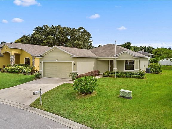 Immaculate 3 bedroom, 2 bath residence in the gated, lakefront community of Lakeridge Estates. Located only two lots from the lake so you enjoy refreshing lake breezes without the lakefront expense. This move-in ready home features an open layout with a great room concept, high ceilings, split bedrooms and a very large kitchen area. A quaint covered front porch with detailed railing provides a welcoming approach and entry. Tiled foyer leads to a spacious great room with high ceilings, plenty of room for furnishings and sliding doors that lead to the back porch. Eat-in kitchen is tiled and features lots of cabinet and counter space, breakfast bar, closet pantry and a comfortably sized dining area. All kitchen appliances are included along with the washer and dryer which are found in the convenient inside laundry closet. Master bedroom is split from the guest bedrooms for privacy and has two walk-in closets, dual vanities, garden tub and tiled walk-in shower. Guest bedrooms are both generously sized each with easy access to the full guest bath with tub/shower combo. Covered back patio is the perfect spot for grilling and entertaining with family and friends. Good sized backyard with fencing on two sides that could easily be fully fenced for additional privacy. Other features include energy efficient double pane windows, two car garage, irrigation system and more. Lakeridge Estates is centrally located between Tampa and Orlando and close to shopping, dining and medical facilities. Also less than 10 miles to Legoland and only 30 miles to Disney World.