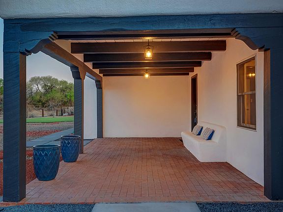 Exquisite home in a tranquil setting on .91 acres! This beauty faces east to capture stunning mountain views and includes UNMATCHED curb appeal with brand new landscaping. That's not all! Walk into your new oasis with an open and bright floorplan. The living room includes a gorgeous wood burning fireplace with a variance plastered finish. The primary bedroom includes a sitting area that looks out to an interior courtyard w/ private access. In addition, the primary bedroom can serve as an in-law's suite as it is separated from other bedrooms. Not to mention this stunning home has received over $150K of remodeling in the past year. Finding a home with all these upgrades in the Corrales market is a rare opportunit