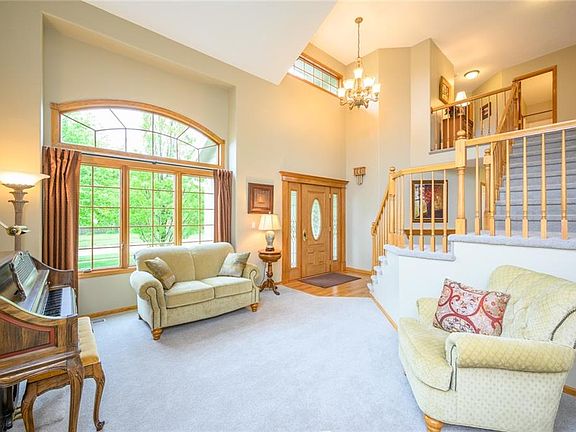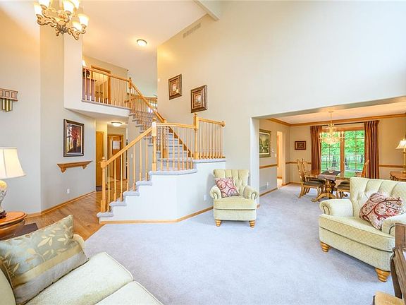 This stunning home in a highly sought after Clive neighborhood has more upgrades than can be listed. The unique, open floor plan includes a dramatic 2-story entry & living room; formal dining; large island kitchen w/ quartz counters, SS appliances, undercabinet lighting, & travertine backsplash; the vaulted great room has huge built-ins, a beautiful stacked stone mantel, & enormous windows for lots of natural sunlight. The upstairs includes a large master with vaulted ceiling, bay window, walk-in closet with wood shelving, & private master bath w/ jet tub & double vanity. The basement has a great room w/ built-in speakers, office with custom built desk & shelf, exercise room, & ample storage. The exterior has a 14x22 deck plus a large brick patio, professional landscaping, & irrigation system. Beautiful hardwoods, new carpet, & insulated 3-car garage. Enjoy Clive's low taxes; 2 blocks from the Greenbelt Trail & easy access to Wildwood Park, Hickman Rd, & the Interstate.