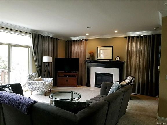 Open Jouse February 23, 1-4 PM. End unit backing to commons and woods. Large open floor plan with large great room, custom crown moldings and extra high ceiling, gas fireplace with custom mantle. Expansive kitchen with granite and stainless appliances. Three bedrooms. Large master suite with vaulted ceiling, walk-in closet, make-up counter and large master bathroom. Guest suite has private bathroom. Finished daylight basement with built-in cabinetry. New designer carpet and custom drapes in great room. New carpet in bedrooms. Award winning Rochester Schools. Association fee includes exterior insurance, garbage removal, yard maintenance, snow removal, access to large in-ground pool, tennis courts and clubhouse.