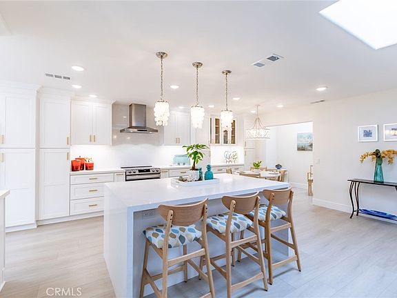 Absolutely Beautiful! This highly sought after open-concept Cordoba home sits in a private, grassy area with no-one above or below you and no steps. The expanded dream kitchen features a huge Center Waterfall Island, loads of cabinets and counter space, plus a walk-in pantry, an adjoining dining area and a separate office area. Beautiful quartz counters are topped with a matching quartz backsplash. No more grout to clean! The spacious Master bedroom has become an en-suite with the addition of a Master bath and a walk-in closet. The second bedroom also has now become an en-suite master bedroom with its re-designed attached bathroom. At the front of the hall is an enlarged half bath which now serves as a powder room/full laundry room combo which accommodates a side-by-side washer and dryer. The kitchen features a reverse-osmosis drinking water system, an instant water heater and a an air-fryer built into the stove. The spacious and inviting living room features an electric fireplace. The home features scrapped ceilings and central air conditioning and heating with all completely replaced ducting. The home is light and bright with dual pane windows throughout, four skylights - in the living room, kitchen and office plus three more skylights - one in each bathroom. The flooring is beautiful luxury wide vinyl planks. The remodel work was done by one of Laguna Woods finest contractors - Elegant Improvements. Come see this home today - it is truly one of a kind! Laguna Woods is one of the most prestigious age 55 and over communities in the US. In Laguna Woods you have access to: bus system around the community & to area shopping, restaurants, medical facilities; 5 pools & 4 hot tubs; golf, tennis, library, 7 clubhouse, a multitude of clubs, 3 fitness centers, theater, horse back riding/stables, garden centers, basketball, card rooms, billiards, bocce ball & more!