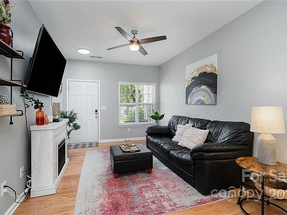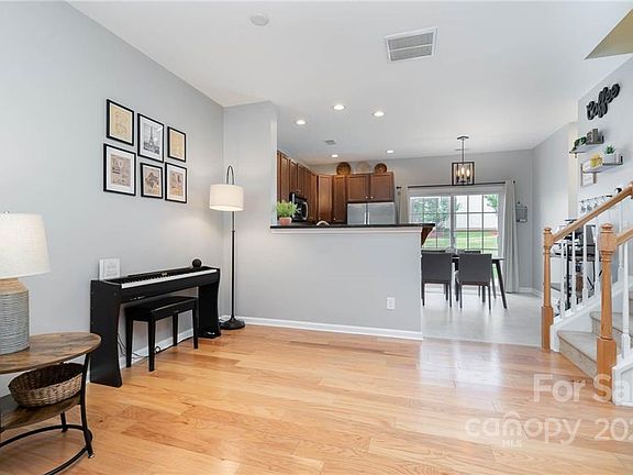 Stunning 3 bedroom, 2.5 bathroom well kept townhome in sought-after Harpers Mill! No rental cap and a great community! With beautiful curb appeal and location, this home is sure to impress. Enter the covered porch to reveal attractive hardwood flooring and double pane windows into the illuminated living room. Enjoy cooking your favorite meals and making new memories in the open layout kitchen with stainless steel appliances, granite countertops, and 42 inch cabinetry. Enjoy outdoor living on the patio right off the kitchen area which is perfect for enjoying dinner in the cool evening breeze. Relax in the bright primary bedroom that includes a walk-in closet and an en suite bathroom. Two additional bedrooms with plenty of sunlight and space. This home is located minutes from restaurants, shopping, and has easy access to Highway 49. Lawn Care included. Highly rated Clover school district.