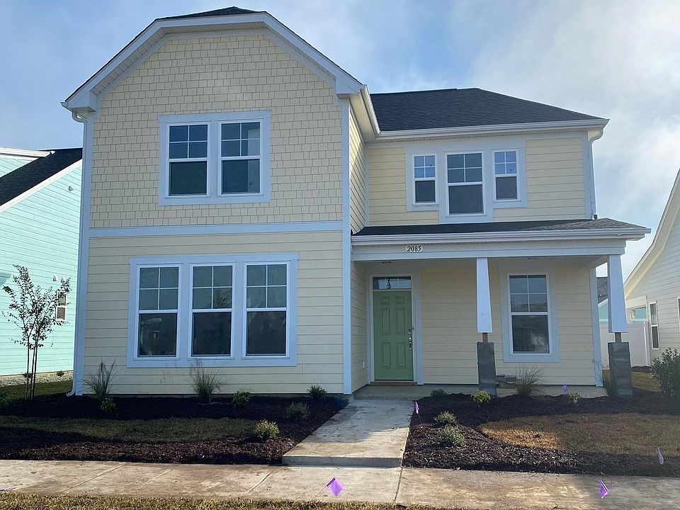 A Beach Cottage theme, the Laguna has the perfect layout with plenty of space and a comfortable open floorplan. Over 2,400 square feet; The Laguna offers 3 Bedrooms and 2.5 Bathrooms. This two-story model includes a first-floor owner's suite, an enormous kitchen, outdoor living areas off of the Great room, a half bath, mudroom, and laundry room conveniently off of the garage. Sprawling space connects the great room, dining, and extensive kitchen. Prepare meals on a large kitchen island with a view of your beautiful great room. Find a personal sanctuary with plenty of natural light and open space. The first floor also features a large foyer and a covered front porch. The second floor provides an enormous loft, a second and third bedroom, and a full bathroom. Easily imagine a media room or recreational room in this space. A storage room already accompanies the extra space allowing for at least one secluded bedroom away from the hustle and bustle of the downstairs area. The Laguna offers room for the entire household with an array of comforts added throughout!
