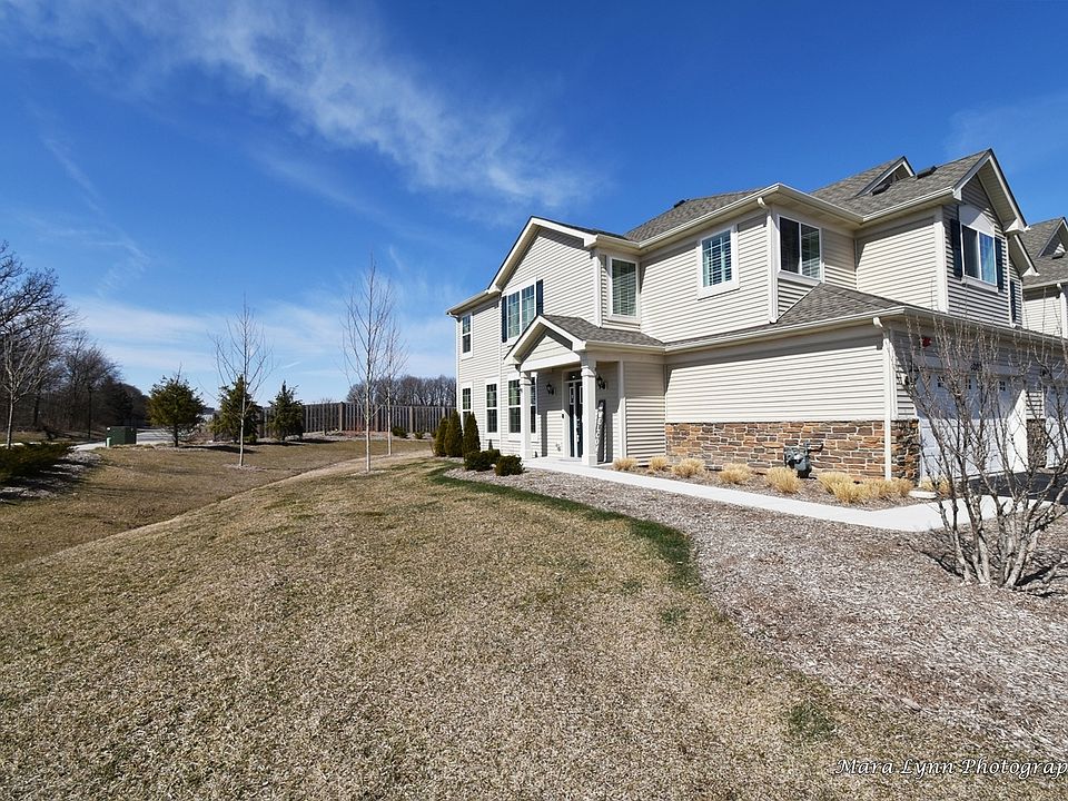 Welcome to this stunning better than new construction end unit townhome with a fabulous flexible open floor plan!! Enjoy maintenance free living at its best! This home is sure to impress with its soaring ceilings, Luxury Vinyl Tile flooring on the entire first floor, custom plantation shutters and amazing natural light throughout! The 2-story entry opens to the dining room and living room with fireplace which makes entertaining so easy! The kitchen is well appointed with 42" cabinets, quartz c-tops, SS appliances and island/breakfast bar. There is a gorgeous view from hall above to entry below! Primary bedroom suite boasts a large walk-in closet and private en-suite bath with large walk-in shower. Two more bedrooms and a full hall bath. Convenient 2nd floor laundry. Two car garage. WIFI-certified home featuring Ring video doorbell & Honeywell smart thermostat. Additional upgrades include: Samsung Stainless Steel appliances (not purchased through the builder), professionally painted and wallpapered in today's colors, upgraded light fixtures, upper and lower cabinet lighting in the kitchen, ceiling fans in all bedrooms, epoxy flooring in garage, monitored alarm system, and more!! Extremely central location is minutes from I-88 access and there's a big variety of shopping and dining nearby as well including the Chicago Premium Outlets just a few miles away...perfect condition!
