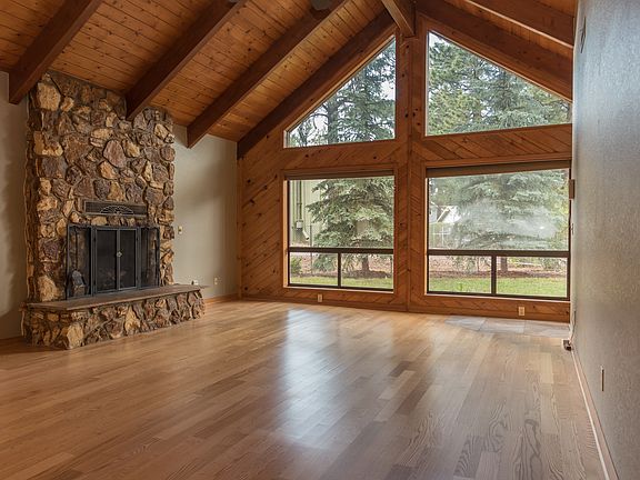 Great opportunity for this Single Level 3 Bedroom 2 Bath home located at the back of a quiet Cul-de-sac on a huge 14,375 square foot lot backing state trust land and populated with tall Majestic Ponderosa Pines. The home is in immaculate condition and has been lovingly cared for. The bright and open living room has tall vaulted ceilings with wood beams, huge windows bringing in natural light and a gorgeous stone fireplace. The spacious kitchen has great counter and cabinet space and ceramic tile. Near the kitchen is a dining room that is finished with wainscoting and has views of the patio and the beautiful backyard. Down the hall, lies the master bedroom with a full bath and walk-in closet.