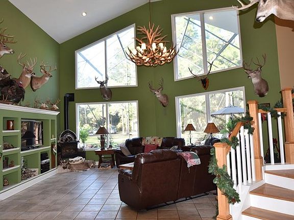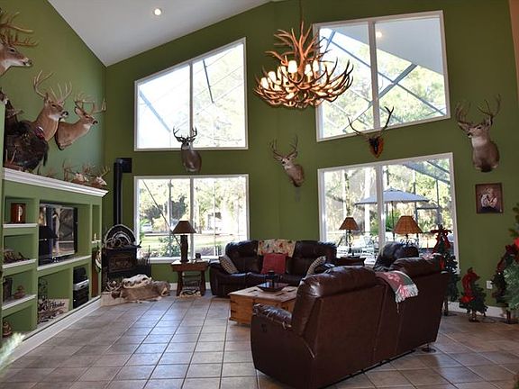 An electric gate and 300 foot asphalt drive leads to ultimate privacy with this custom built, 4 bedroom/4 bath pool home on over 7 acres ,deed restricted, fully fenced acres. Only minutes to town, this 3,500 square foot home features 25 foot ceilings with roof to floor insulated windows, new interior and exterior paint, a newly upgraded kitchen including top of the line granite countertops and stainless GE and Bosch appliances. This home features Kitchencraft cabinets throughout. The two story pool cage encloses a newly re surfaced pool deck and newly marcited, heated pool. Out front you will find a 1 acre, irrigated and producing peach orchard and out back you will find a 50x60 metal barn. The barn includes 16 foot eves for your boat and motorhome, as well as new overhead lights, a 30 amp hookup and water. Other property features include a Pest Defense System within the house walls, an Invisible Fence system for your pets, and a 3 hsp submersible pump for the 2 acres of lawn irrigation. This rare find of deed restricted acreage close to town has too many other features to list.