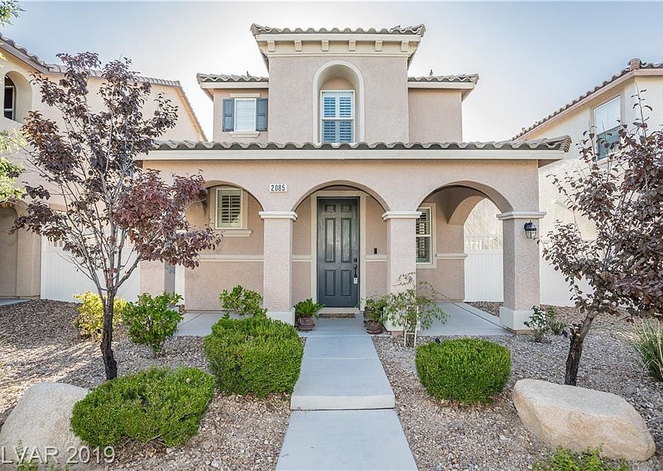 Beautiful detached move-in ready home in Inspirada with access to 3 pools! This home has shutters throughout with large living room, surround sound system, 9ft ceilings and laminated dark wood floors downstairs. Open kitchen with stainless appliances and corian counter tops. Upstairs has master suite with 2 walk-in closets, 2nd large bedroom, and big open loft with jack in jill style bathroom. (Loft could easily be converted to 3rd bedroom).