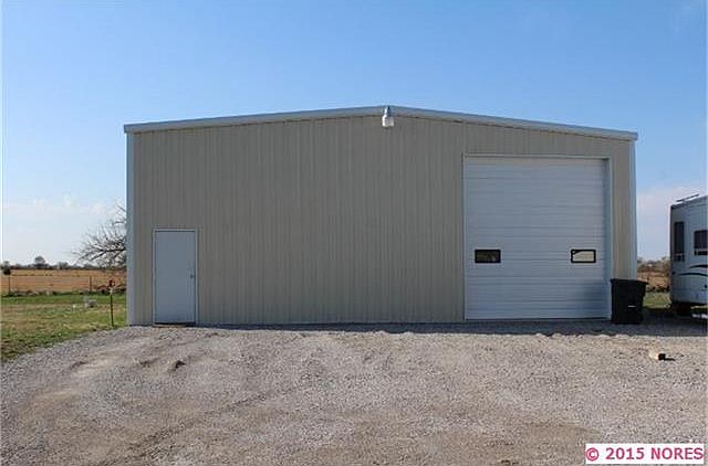 Has a 40x50 ALL STEEL (red iron) building with living quarters(heat & air), 15' walls with 12'x13' tall overhead door with heated shop area. Has floored storage over living quarters. Aerobic system. Sellers are licensed real estate agents.