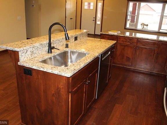 Rambler on a Cul De Sac, Large Master Bedroom with Private Bath, double sinks, two walk in closets, Patio door to screened in deck. Extra Bedroom on Main level with walk thru bathroom. Open floor plan for Kitchen, Dining and Living Room. Gas Fireplace, Granite Stone counter tops, Center Island, Breakfast Bars, Gas Range with direct vent hood. Patio Door to screened in Deck. Large Concrete Front entry Porch area. Heated oversized garage. Basement has bathroom finished and two bedrooms framed, sheet rocked. Walk out future family room. Has a secured storage area for valuables in LL. Flooring allowance for bedroom and hallway