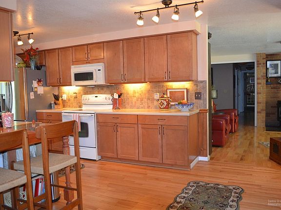 Hard to find 1 level home w/2 master suites located on nearly 1/2 acre in Bend's Kings Forest Addition. Features include cherry cabinets, Corian & granite counters, real hardwood floors, crown moldings, a recently remodeled master bath, newer carpet, central air, & a cozy gas fireplace. From the sun/garden room look out onto the wonderful fully fenced rear yard w/large decks, multiple water features, raised garden space and more. Formal LR and DR. RV parking as well! Come have a look & fall in love today!