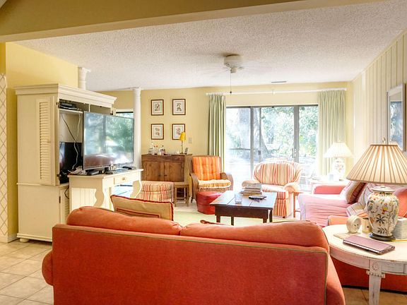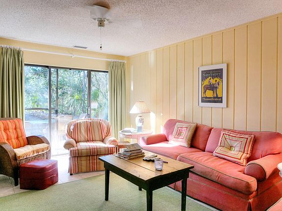 Featuring a wooded, peek-a-boo view of Red Maple Lake, this charming 3 bedroom, 3.5 bath condo is perfect for a Florida island getaway! The open floor plan is inviting and the living and dining rooms offer patio access, for entertaining or just relaxing. The kitchen is bright, equipped with all major appliances and has a pass-through to the dining room. A half bath and a laundry room with full size washer/dryer and courtyard access complete the downstairs area. Moving upstairs, the master bedroom has a king bed, private balcony and private bath with his/her vanities. The first guest bedroom has twin beds and a private bath. The second guest room has a queen bed and private bath. Convenient to golf, tennis and the beach, this villa is just right for a second home or residence.