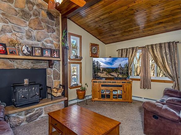 A beautiful home nestled along Greenhorn Creek (a creek runs through it) just inside Rye city limits. Warm and open one level living with spacious loft for extra guests, entertainment or storage. Enjoy the spectacular wooded surroundings and listen to a breeze whisper through the trees with the gentle flow of the creek running nearby while you relax on the wrap around covered wooden deck. Inside you are welcomed with 2 wood burning stoves that provide an extra cozy warmth during the cool Colorado weather. This home also boasts many recent updates including 2 completely remolded bathrooms designed for comfort, functionality and beauty. Other recent upgrades include, carpet and paint throughout. All windows are triple pane with a lifetime, transferable warranty. Main wood-burning stove with blower. All new GE kitchen appliances, sink and faucet. All new interior solid core wood doors with new hardware. Outside you'll enjoy a 1400 sq ft wrap around wood deck with treated and weatherized wood including a gas line splits for BBQ, smoker and patio heater. Back yard also has the gazebo alongside Greenhorn Creek, rope swing, fire pit, mature grass, trees and pathways freshly re-rocked. Newer woodshed for covered firewood storage, garden shed and tool shed. All sheds with electric lights and outlets.This entire home and property has been very well maintained and upgraded, and if you are looking for that perfect home, that lets you enjoy life... look no further!!!