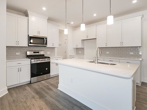 2-story Luxury Townhome the Addison in Prime Cary Location with 2-car garage offers 1st floor guest suite, spacious kitchen with large Island, quartz countertops, white cabinets, and tile wall backsplash. Hard-surface floors throughout entire first floor. Covered patio backing to green space! Minutes to Beaver Creek Commons, Costco and easy access to Hwy 55, 64 and 540.