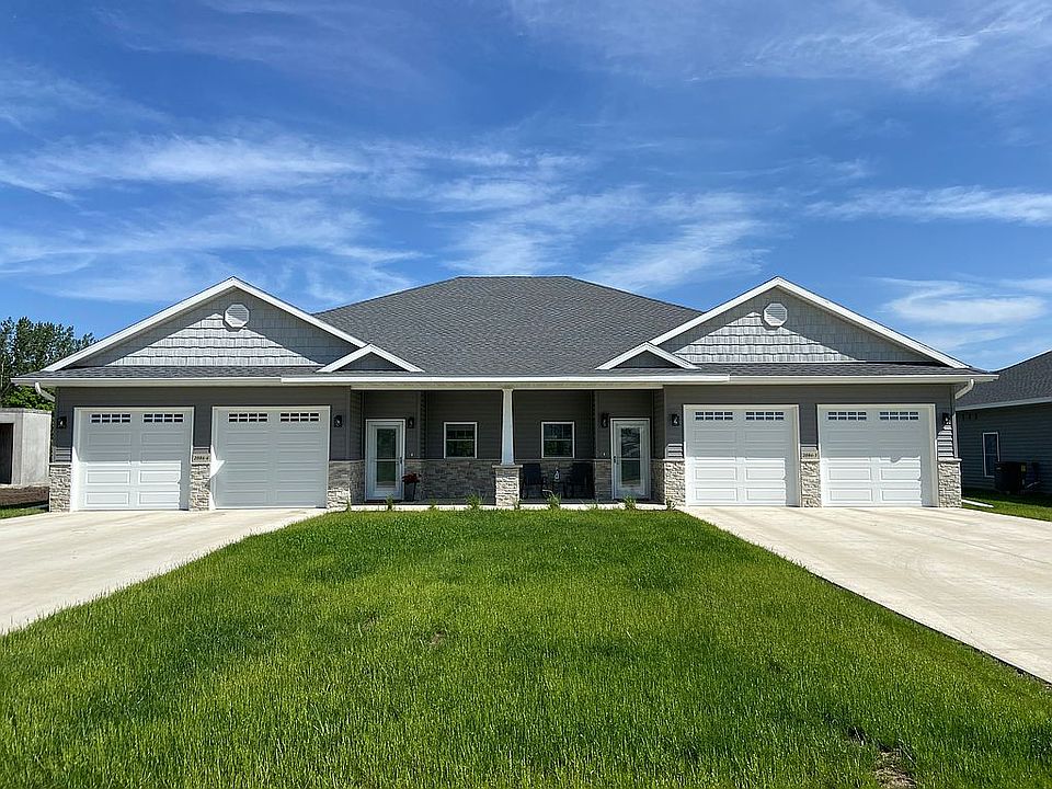 Beautiful new construction 2 bedroom, 2 bath condominium with a gorgeous view of Three Elms Golf Course. Open concept kitchen and living room with door leading to the patio. Carpet, vinyl, and tile flooring with 9’ ceilings throughout. 2 stall garage with side door for golf cart. Storm shelter for the unexpected Iowa weather. Electric heat and central air conditioning. This is a perfect home and location! Live in the country and only blocks from shopping and services.