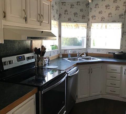 Oakcrest Park Three bedrooms 2 bath. HUGE master has double sized, double seated shower stall, dual sinks-open kitchen, large pantry, corner window for kitchen sinks - open living room and dining area, pellet stove - tape, textured, ceiling fans. $90,000.00