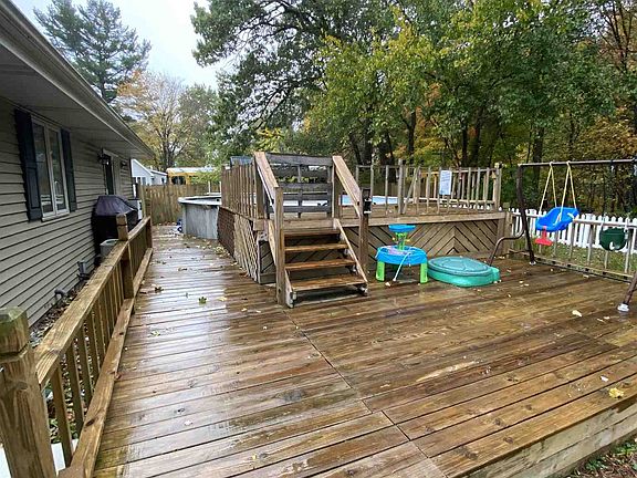 If you are looking for a nice home at Koontz Lake, this is it! This well maintained home is turn key ready. Offering 3 beds and 2 baths, it is in great shape. PLUS A PARTIALLY FINISHED BASEMENT! Nice well maintained yard with mature trees and a white picket fence in the back yard. This property is 1.1 acres and is partially wooded. There is a spacious office/bonus room. Back yard large deck wraps an above ground pool. The pool has not been opened since it was closed and winterized 2 years ago. It will need a new liner. The detached garage offers great storage. The basement is partially finished and is a great extra space. Large master bedroom offers nice morning views of Koontz Lake. Brand new high efficiency furnace in 2019! New well pump as well. All appliances are included with this sale. Call today for your private showing!