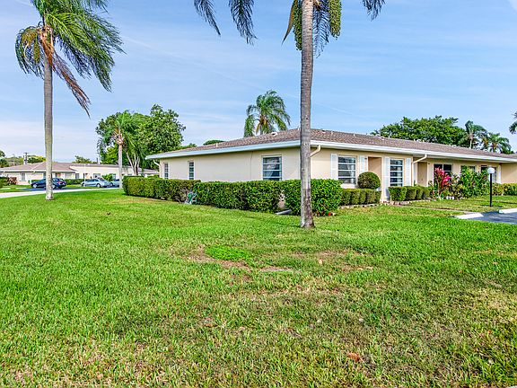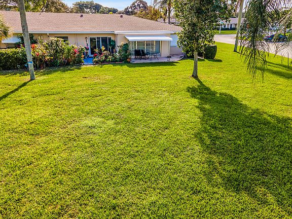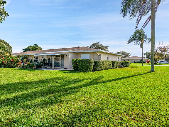 Welcome to Boca Lakes - a 55+ community. This unit is the largest 2 bedroom and 2 bathroom corner unit with an expansive yard. Condo offers a split bedroom plan with plenty of closet space and a nice open patio. Newer AC and water heater, roof is only 3 years old. Washer and dryer in the unit.Maintenance fee includes water, extended cable, roof, security gate and recreation facility where you can enjoy tennis, pickle ball, heated pool, game room and more. Conveniently located just West of Turnpike, near shopping, dining, Town Center Mall and Uptown Boca.