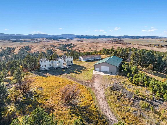 Amazing land, amazing views, and prime location minutes from Sturgis. This private oasis is listed by Lee Harstad (605) 920-0537. 40+ acres in the Hills, complete with a massive machine shop (125' x 60'), manufactured home (28' x 80') and the "Millennium!" The Millennium is an unfinished "Castle," made of metal and concrete, built like a fortress to last 1,000 years. It currently stands around 10,000 square feet with detailed plans included in the sale of how to complete it. Or wrap up construction to your preference! The land is rolling hills with mixed pines and oak, and views in every direction. Wildlife galore! The manufactured home has all utilities and allows on-site living; it also has generator back-up power. The machine shop contains multiple rooms and storage areas, and will include equipment and machinery, ready to go. The property is located at the end of a private, dead-end road and a well agreement for the community well serves a single-family residence. Room to roam and escape with one of the most unique properties in the Hills!