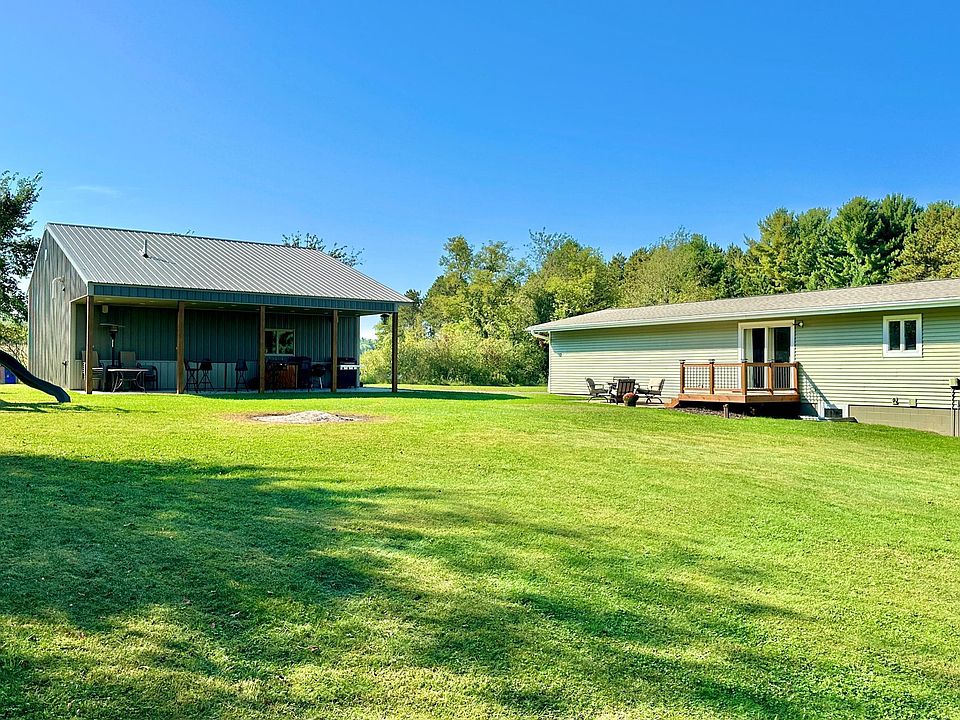 An incredible opportunity awaits in New Richmond! This four -bedroom, two-bath rambler is ideal for anyone seeking a beautiful family home with an outstanding workshop space. Located on a secluded, one-acre wooded lot, this property provides the perfect private escape. The main floor is an open, inviting space with a vaulted ceiling, connecting the living room and the stunning, newly remodeled kitchen. Prepare meals on the sleek granite counters and enjoy the modern appeal of stainless steel appliances, white cabinetry, and butcher block island. The home features a functional layout with two bedrooms and full bath on the main level. The beautiful oak staircase leads to the lower level which has been thoughtfully updated and includes a cozy family room, two more bedrooms with egress windows, and a brand-new 3/4 bath. The walk-out basement adds convenience and easy access to the backyard.