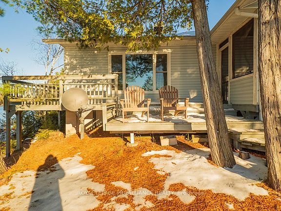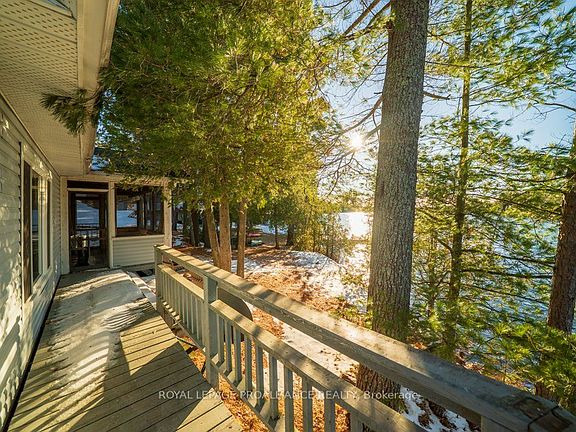 MORE PHOTOS TO COME - Embrace the beauty of every season at this extraordinary 4-season recreational residence on Grindstone Lake, where 245 ft. of pristine shoreline and a private1.2-acre lot invite you to reconnect with nature's wonders. Step into a beautifully renovated, fully furnished 1,700 sq.ft. open-concept home that inspires relaxation and togetherness, with a spacious wrap-around deck offering panoramic lake views perfect for morning coffees, sunset gatherings. or hosting loved ones for unforgettable gatherings, this opportunity provides 2 spacious bedrooms, primary with en suite, and an additional elegant guest bathroom, open concept kitchen, dining, lakeside nooks and games area, every detail invites comfort and relaxation, while the beautifully furnished interiors mean you can start making memories from day one. In 2020 the interior underwent many renovations including hardwood floors throughout, kitchen, bathrooms, a new propane furnace, new windows and sliding glass doors, spray foam insulation throughout the 1500 sqft crawlspace/utility room. The roof was replaced in 2016, and the detached garage with loft area is fully insulated and heated. Enjoy endless recreational trails right from your doorstep, excellent swimming, and a sandy-bottom shoreline with your own private boat launch. Whether you dream of casting a line for bass or trout, exploring crystal-clear waters by boat, or simply savoring peaceful days in the heart of cottage country, this turnkey sanctuary is ready for your next chapter-no renovations required. With year-round road access and thoughtful updates throughout, every detail has been designed to ensure effortless enjoyment and lasting memories. A serene retreat surrounded by nature's tranquility, this property is your canvas for unforgettable moments all year round. Step into a life where every season inspires-your lakeside adventure awaits.