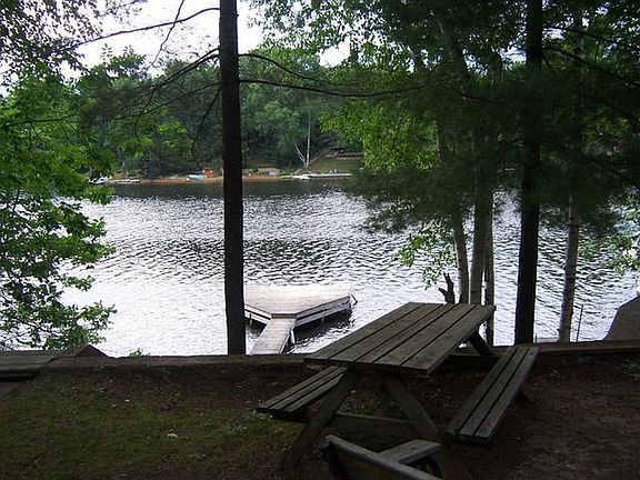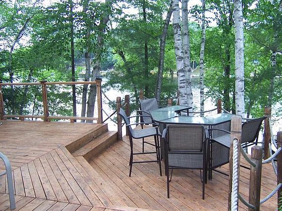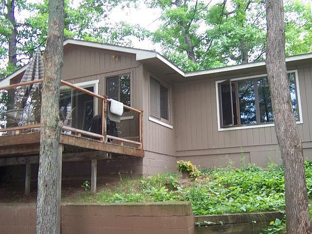 Charming waterfront cottage with sandy frontage on all-sports Five Lakes. Two bedroom, one bath with open kitchen, living room, and dining area. Newer roof, upgraded windows, and gas log fireplace could be converted back to wood. Beautiful views of the water from the lakeside deck. Detached garage and low maintenance landscaping means more time on the water and less time working in the yard.