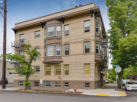 Early 1900's Georgian brick building; secured entry, remodel, well maintained 4th floor 1 lev w/NW terr view, hdwd floors, beautiful kit w/breakfast bar,stainless steel appls, tile counters & backsplash, LG combo washer/dryer, clawfoot tub, wainscoting, penny tile, closet organizer, ceiling fan, newer water heater,vinyl windows, 60 sf storage unit, parking space. Near Quimby St shops/rests hub, trendy NW 21st Ave, Pearl dist & downtown.