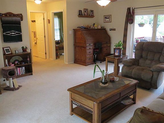 This is 1 level living at it's finest. Inside you will appreciate all the natural light thanks to the oversize windows & 9' wide view windows out the back overlooking the large spacious deck. The kitchen is also large & features newer stainless steel appliances, a bar long enough to sit 5 people at, and an abundance of cabinets for storage! The Master Suite is across the home from the other bedrooms for privacy & features a private bath with jetted tub and a walk in closet.