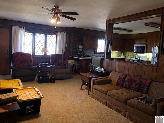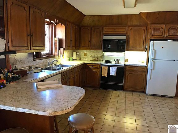 Home is a family estate. Handcrafted cabinetry and built ins throughout. Open concept design. Living room has a hand cut stone fireplace. Utility room has a shower and sink. 3 bedrooms on main level, with a bonus room upstairs. Central heat/air. Pole barn is 36' X 26', shop is 29' X 27', both have electricity. Home sits on over five acres just minutes from Murray. Estate Selling "AS IS", seller will make no repairs.