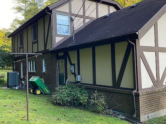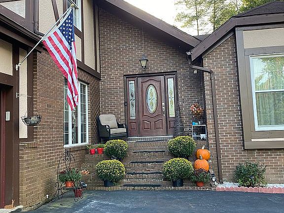 Lovely 2 story Brick Tudor home sits on 5+ acres of land. This home features 2.5 baths, Has newly installed Granite Countertops in kitchen, stainless appliances, include gas range top, double ovens, trash compactor, dishwasher and refrigerator. All 3 bathrooms have new vanity and sink as well as new flooring. All the bedrooms have brand new paint and carpet. Gas fireplace in Living room and family/den. Trane central heat and air is still under warranty. New Garage doors. This home has a 2 car garage attached and a large detached garage. Has a large garden spot with storage shed. This home is conveniently located close to stores and restaurants. City trash pickup and city sewage and water.