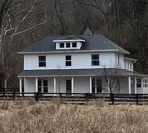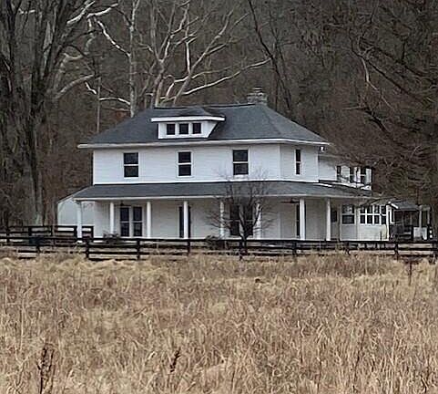 A beautiful 134 year old home with 53.85 gorgeous acres. This renovated home is a one-of-a-kind! Beautiful stone fence, a rolling creek, lined with beautiful trees. Over 3000 sq. ft. with 4 large bedroom and 2 full baths. All large rooms with high ceilings and wood beams. Very quiet country living. Inside looking out, is an enclosed sunroom and a wrap around porch. Five outside buildings and a large barn. Lots of woods for hiking or ATV riding.