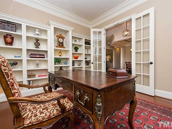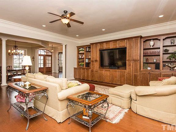 Gorgeous Ranch Style, Custom Home in Cary! All Brick! Stunning Loggia w/Fireplace & Cathedral Ceil. Luxury Features Throughout - 10+ Ceiling, Arch Entry, Custom Cabinetry, Built-ins, Trey Ceilings, WidePlank Hrdwd. Gourmet Kitchen w/Granite, Center Island, Large Eat In Bar, Walkin Pantry, Butler's Pantry. Spectacular 1st Fl Master Suite w/Huge Master Bath. 2 Large 1st Floor Secondary Beds w/Jack-n-Jill Bath. Spacious Bed & Bonus on 2nd Floor. Walk In Storage. Large Patio Overlooks Private Landscaped Yard.