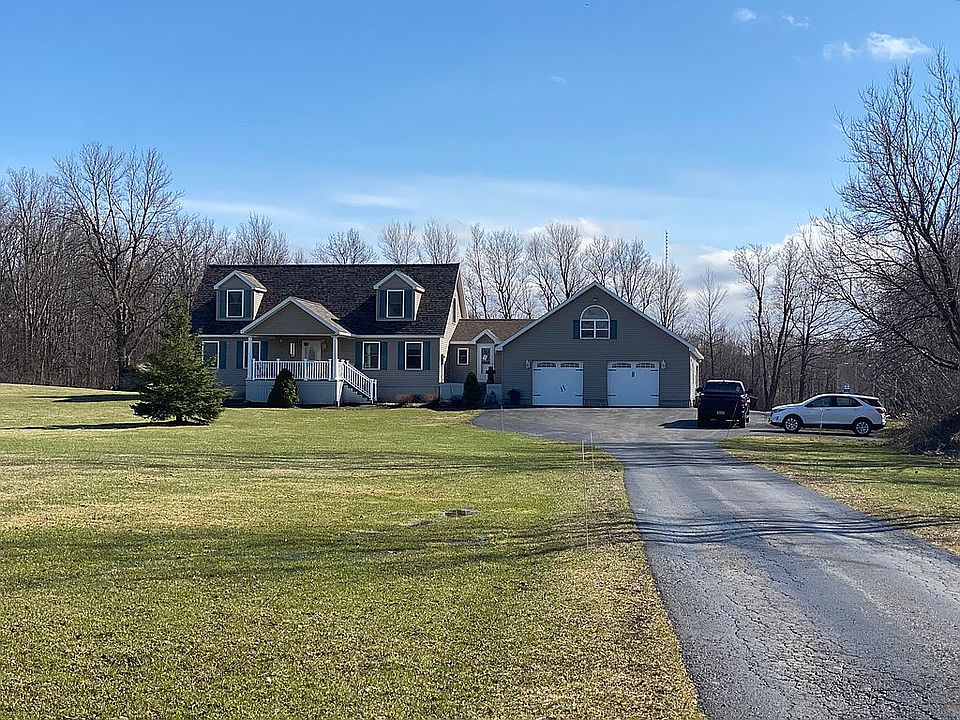 Secluded 2100 sq ft Cape Cod style home sits on almost 6 acres and offers a wonderful country setting. The interior features 4 to 5 bedrooms and 3 full bathrooms. Master bathroom on the main floor was recently renovated with a full tile shower. The full basement offers an additional 1400 sq ft of space that can be used to your hearts desire. The attached 3 stall heated garage offers room for all of your toys an has full attic trusses for much more storage. Outdoor wood boiler set up for pipes and hookups already in place just bring one in and hook it up for an even lower heating alternative. Call today for a private showing! Phil at 315-783-5205. Must give 24 hour notice.