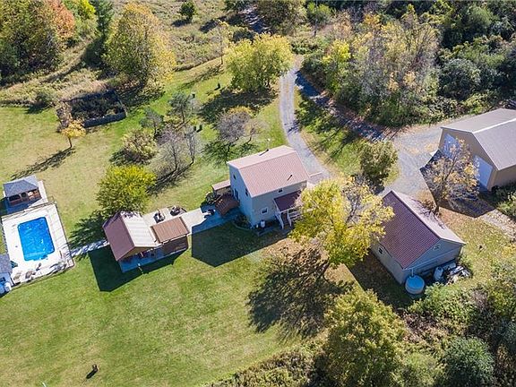 Not a home, a way of life. If you have been looking for peace, privacy and pride of ownership this is it. This 3 bedroom home was constructed in 1996 and offers a little something for everyone. Perfect for the outdoor enthusiast that loves to entertain, enjoy outdoor living with room for all the toys and more room to grow if needed. First floor of this lovely home features gorgeous eat in kitchen with stainless appliances, beautiful custom beveled edge hardwood floors throughout including the formal dining / living room combo and updated bright first floor half bath with tile floor. Upstairs features 2 bedrooms, one full bath and master suite also. Sliding glass doors get you to the expansive and gorgeous outdoor living area with concrete patio and pavilion, including the screened in gazebo, fenced in in-ground pool and over five acres of land. Detached garage with upstairs storage area and custom built 40X40 pole barn! This barn has 17' ceilings with four 14' commercial doors, plenty of room for just about anything you may need to store including built in shelving. Just outside the city so not city tax! Rare gem that won't last long, call today for your private viewing!