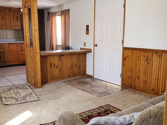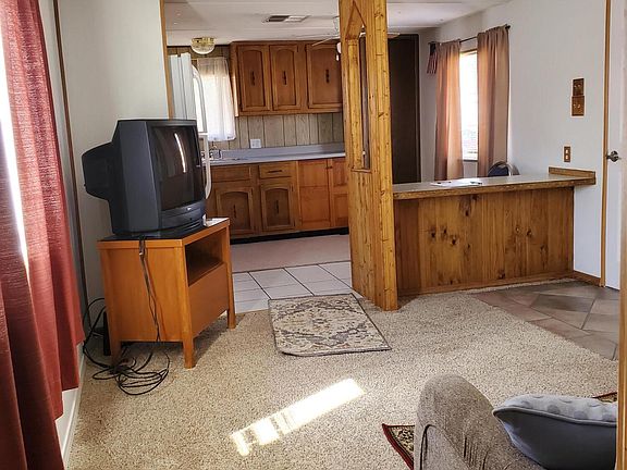 Clean, cute older singlewide. Large level lot with 6 foot chain link fencing. Storage sheds, one large, one smaller. Views of surrounding mountains. Open Deck. Spacious kitchen. New Refrigerator. Washer and dryer hookup. Evaporative cooling. Paved roads, private water company, electric and propane. Furniture can stay.