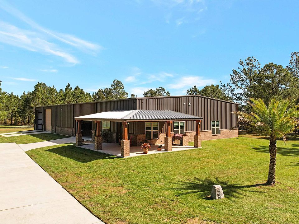 20873 Keller Road in Foley, AL offers a stunning barndominium nestled on 11 acres of picturesque countryside. This unique property boasts a perfect blend of rustic charm and modern luxury, offering a one-of-a-kind living experience. The living quarters of this property are housed in a charming barndominium, which features 1 bedroom and 2 bathrooms. His and her large walk in closets and a 8’x8’ walk in fortified safe room with vault door. The property also includes various amenities, such as pond, covered porch, 65’ RV pad site with water & sewer/ 50 amp plug, home has 400 amp service. Property also has a 20 KW Generator on site. Out building that has another 1,200 SF of covered storage. The main building measures 60’x120’. The pond is stocked with fish. Call today to view this incredible property.