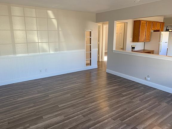 Why rent an apartment when you can rent a whole house. This beautiful and updated home awaits your family. It is located in a very desirable part of Castro Valley. The home is within walking distance of many shops, restaurants, parks. bus stops, Eden Hospital, and BART (0.8 miles). It is conveniently located close to Hwy 238, I-580, and I-880. It features two bedrooms and one bathroom with a living room, kitchen, dining area, and an oversized one car garage. It has a small, low maintenance backyard for your family and pup to enjoy. The kitchen includes a gas stove, refrigerator, and dishwasher. There is new laminated flooring throughout, a tub/shower in the bath, washer/dryer in the garage, and a new and efficient air conditioning/heating system. There are also 2 Nest Surveillance Cameras, Nest Alarm (optional subscription), and other smart home features. There are 3 off street parking spaces including 1 garage space. Renter pays for all utilities. No smoking in the unit. 1 dog max, no dangerous breeds.