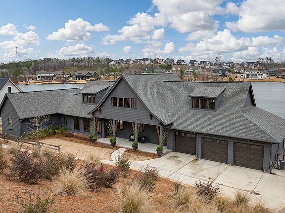 Discover a beautiful lakeside getaway where you can enjoy peace and the widest views of Lake Blackridge. Inside, the open layout and high ceilings allow you to soak in the vacation vibes, with every room offering stunning lake views. The main floor features a spacious primary suite with remote window treatments, a stylish powder room, a chef's kitchen with a large island, and a three-car garage. Upstairs, there's another bedroom you could also use as an office or bonus space! Downstairs, you'll find three more bedrooms, a living area, two bathrooms, and a 910-square-foot unfinished space that you can customize. There's a new dock for relaxing by the water at sunset with the sun behind you, no need for sunglasses! Enjoy the most stunning views, from the only side of the lake that offers a morning sunrise and evening shade, for relaxing on the pier or porch.This property is all about tranquility and lakeside living at its absolute best!